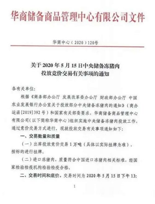 5月12日電 12日,華儲網(wǎng)發(fā)布《關(guān)于2020年5月15日中央儲備凍豬肉投放競價交易有關(guān)事項的通知》稱,5月15日將出庫投放競價交易1萬噸中央儲備凍豬肉。