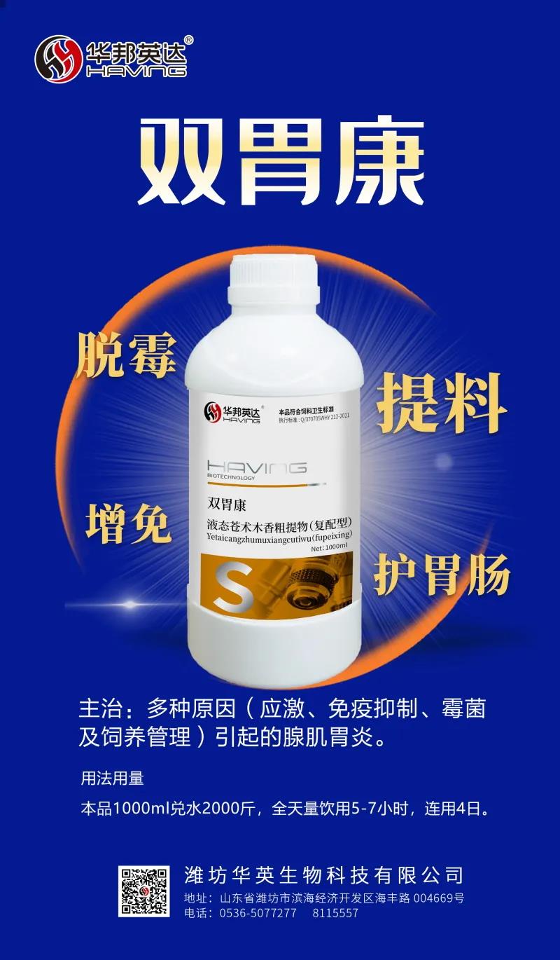 雙胃康主要起到寒熱平調(diào),消痞散結(jié),補(bǔ)氣健脾的功效。解決腺肌胃炎的同時(shí)修復(fù)脾臟,促進(jìn)免疫器官的發(fā)育,提高機(jī)體免疫力及出欄成績。徹底解決、不容易反復(fù),適用于多種原因(應(yīng)激、免疫抑制、霉菌及飼養(yǎng)管理)引起的腺肌胃炎,如采食量下降、挑料、消瘦、生長緩慢、拉細(xì)條糞、肌胃糜爛、腺胃腫脹等癥。