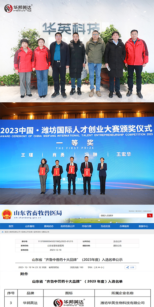 華英科技榮獲2023年度山東省“齊魯中獸藥十大品牌”榮譽(yù)稱號!再次獲此獎項(xiàng),不僅是政府和行業(yè)對華英科技在中獸藥領(lǐng)域工作的認(rèn)可及肯定,同時也激勵著我們樹立更高目標(biāo),以更大的力量推動中獸藥產(chǎn)業(yè)創(chuàng)新發(fā)展。