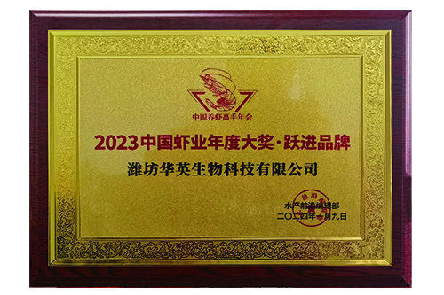 1月9日—10日,第十一屆中國養蝦高手年會暨第二屆中國蝦業博覽會在天津隆重舉行。來自全國各地的專家學者、企業代表以及養殖精英等600余人齊聚一堂,共同探討微利時代下的蝦業突破。濰坊華英生物科技有限公司受邀參會并榮獲2023中國蝦業年度大獎·躍進品牌。
