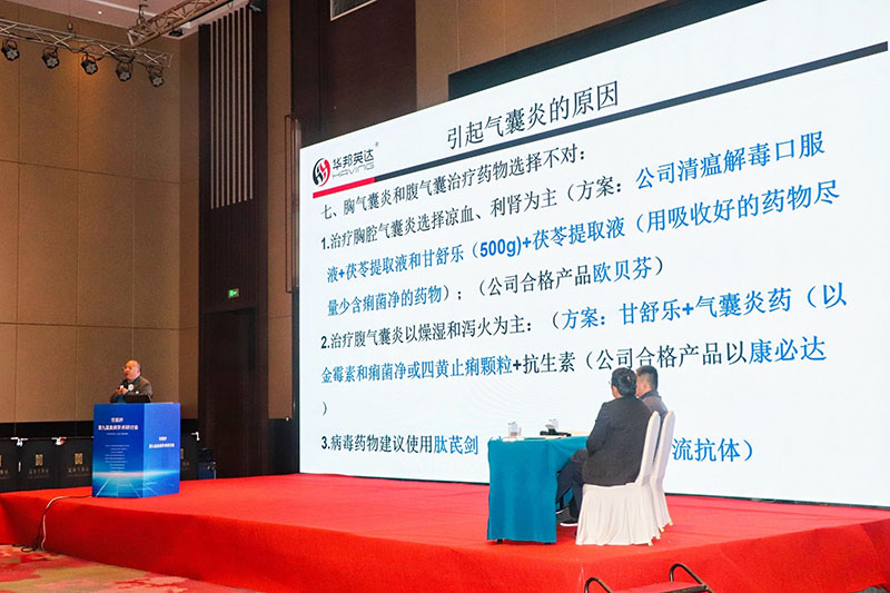華英科技集團技術總監王東聚焦養殖一線的難點、痛點問題,通過《肉雞頑固性氣囊炎和支氣管栓塞的防控》主題報告,針對七大發病原因,分別從中醫和西醫的角度給出了不同的治療思路。主題報告內容豐富、實用性強,為養殖業從業者提供了科學的防控思路和技術支撐,受到了參會者的廣泛關注和普遍好評。