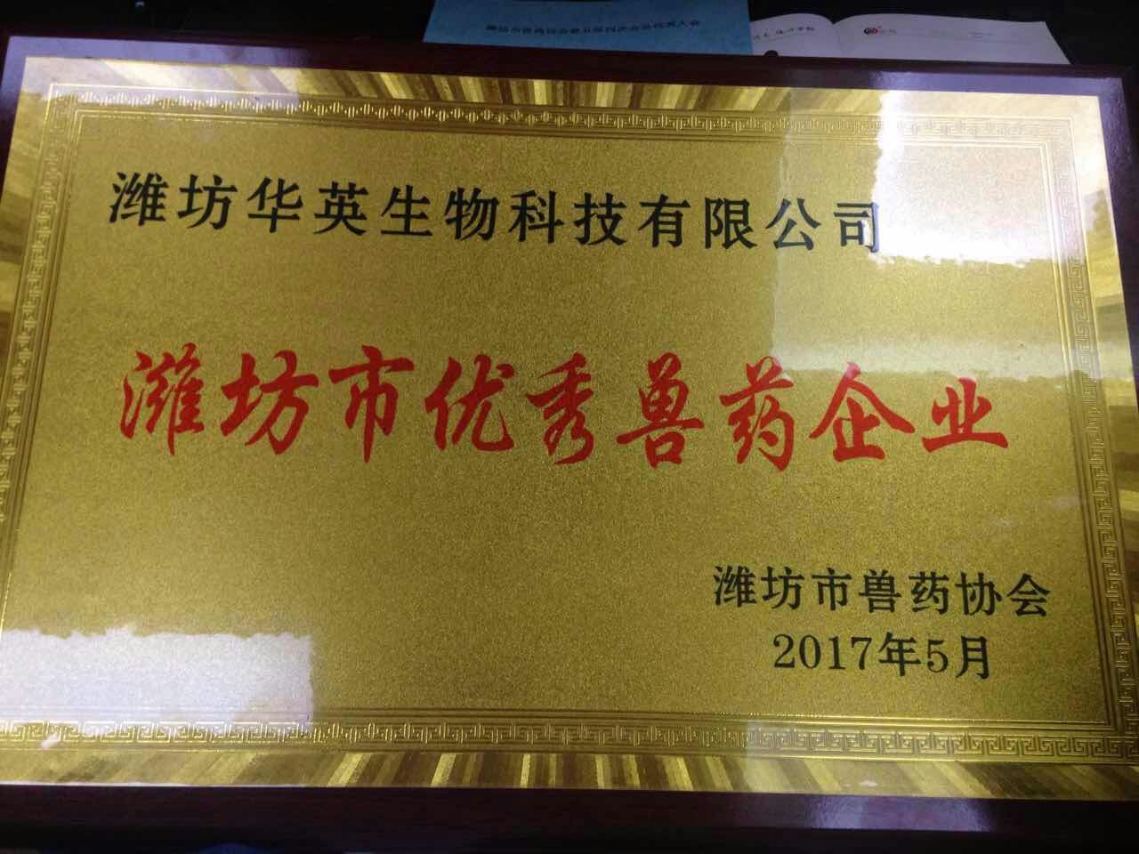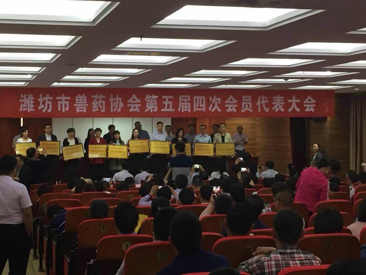 2017年5月10日,濰坊市獸藥協會第五屆四次會員代表大會在濰坊華亞國際酒店隆重召開,濰坊華英生物科技有限公司應邀出席并喜獲“濰坊市優秀獸藥企業”稱號。濰坊市獸藥協會會長姜正軍作2016年度工作報告,濰坊市畜牧獸醫局獸藥飼料管理科科長郭金梅部署獸藥管理工作,濰坊市畜牧獸醫局李玉忠副局長發表講話。