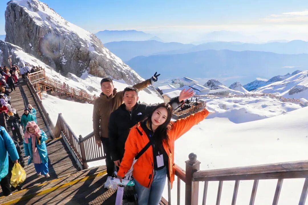 一早,團隊前往被譽為“天然冰川博物館”的玉龍雪山,在巍峨雪峰的見證下,領略大自然的鬼斧神工。山腳下清澈如鏡、色彩斑斕的藍月谷,更是讓人流連忘返。下午,一場以雪山為背景的大型實景演出《印象·麗江》,以粗獷豪放的演繹,生動展現了當地民族的原生文化,給現場觀眾帶來了震撼的心靈體驗。