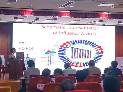 原山東省農(nóng)科院畜牧獸醫(yī)研究所所長、山東省政府畜牧獸醫(yī)專家顧問團(tuán)成員張秀美做動(dòng)物疫病流行趨勢、科學(xué)養(yǎng)殖技術(shù)、安全用藥知識專題講座。