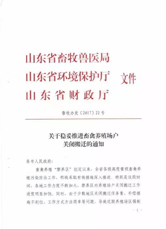 在這樣的背景下,山東畜牧局、環保廳、財政廳聯合下發關于穩妥推進畜禽養殖場戶關閉搬遷的通知!