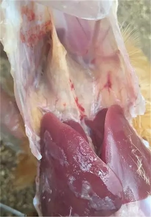 1、最普通的大腸桿菌引起的包心包肝,此時的心包膜和肝包膜是白色的。