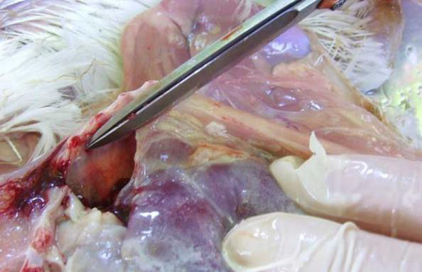 2、溫度過高、負壓過大:氣囊壁增厚,氣囊上有黃色干酪物,同時伴有包心包肝等癥狀。