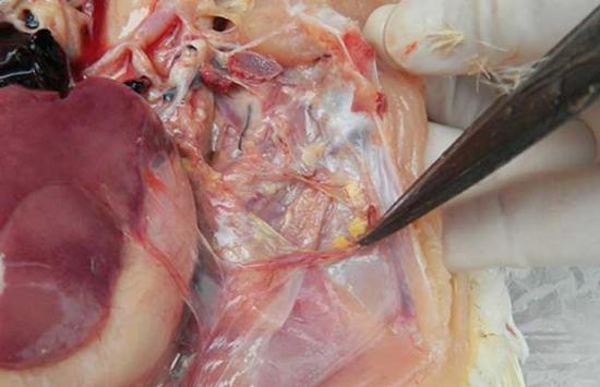 ? ? ? ? ?? 雞氣囊炎的剖檢癥狀: