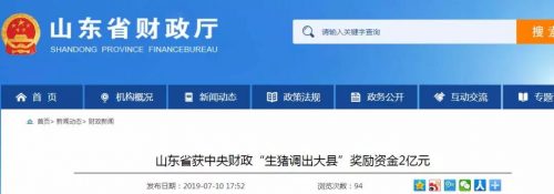 • 近日,中央財政撥付山東省生豬調出大縣獎勵資金2億元,支持縣級政府增強穩生豬產能、保安全供給能力。今年山東省有41個縣進入國家“生豬調出大縣”獎勵范圍,比上年增加5個。