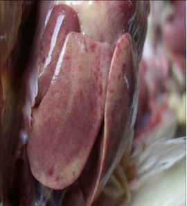 以心包積液、出血性肝炎為特征,發病急、傳播快,發病家禽的特征性癥狀是無明顯先兆而突然倒地,兩腳劃空,數分鐘內死亡。其剖檢變化主要為死亡家禽有明顯的心包積水,心包呈水囊狀;肝臟腫大、質脆且充血,外觀呈淺黃至深黃色,肺臟淤血水腫。